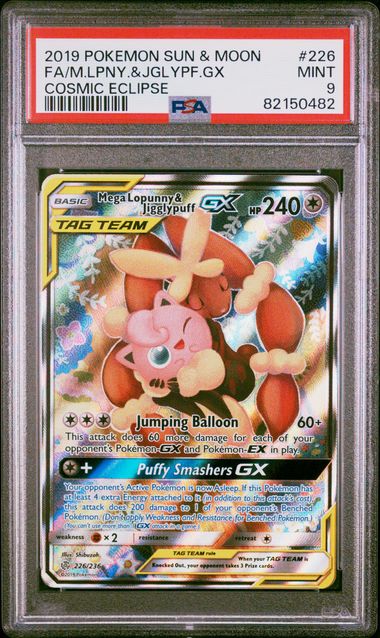 PSA 9 Mint – 2019 Pokemon Cosmic Eclipse Mega Lopunny & Jigglypuff GX #226