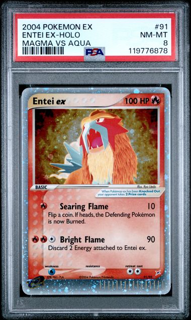PSA 8 Near Mint – 2004 Pokemon EX Team Magma vs Team Aqua Entei ex #91